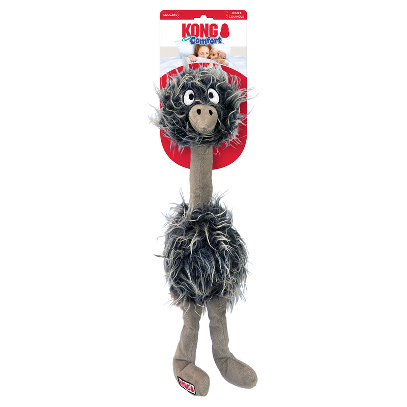 KONG Comfort Jumbo Bird’s gigantic size and long, dangly body are great for flights of flopping fun that satisfy shaking instincts. A squeaker in the head and belly fuel flapping fun with a silly friend whose soft, long plush and soft body make for soothing snuggles when it’s time for a rest.